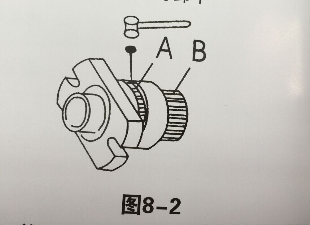 4.用撞击力如(图8-1)A、B两个位置的同一根四方榨条冲出一根如图8-2,其余则自动散下,若需要更换出饼口可轻击出饼口凸出边,出饼口即可卸下。